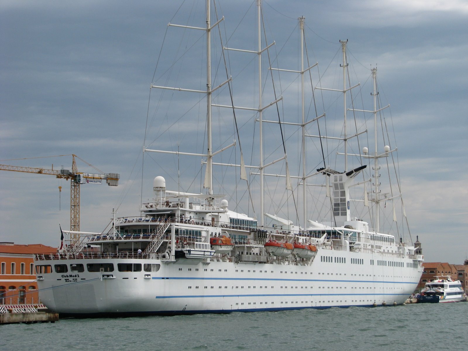 После проезда по мосту работники дорожной службы направили нас на ближайший свободный паркинг, который представлял собой 5-ти этажное здание, плюс два этажа подземных, плюс где-то шесть секций. И такой паркинг там не один. Оставив машину на ближайшем свободном 4-ом этаже, мы спустились на лифте вниз, взяли бесплатную карту Венеции и отправились на причал. Там воспользовались услугами небольшого кораблика, и за 5 евро с носа (37 грн.) он довез нас до знаменитой площади Сан Марко. Отведав пиццы в кафе на набережной, мы отправились в путешествие по этому легендарному и восхитительному городу на воде.
